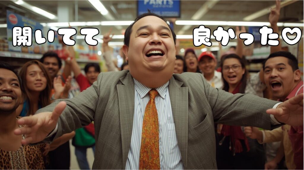 ハローズとか、ラムーとかそういうディスカウントスーパー系の店が意外と永遠OPENしてんの。