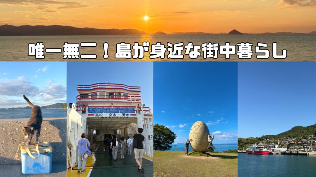 ある程度の街に住みながらも気楽に離島トリップ出来るぶっ飛びぐあい、まじで日本中で高松でしか体験できない暮らし方だと思うんだ!!